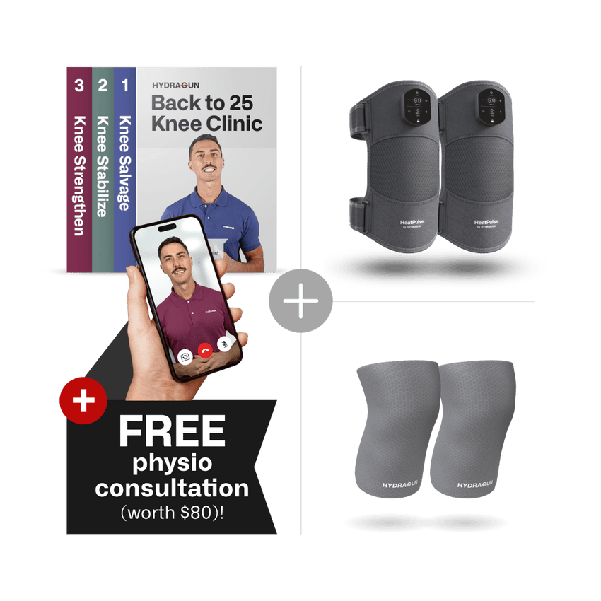 • If you suffer from knee pain, the HYDRAGUN HeatPulse could be a game changer. It uses heat and steady vibrations to deliver relief from tightness, soreness and stiffness.”